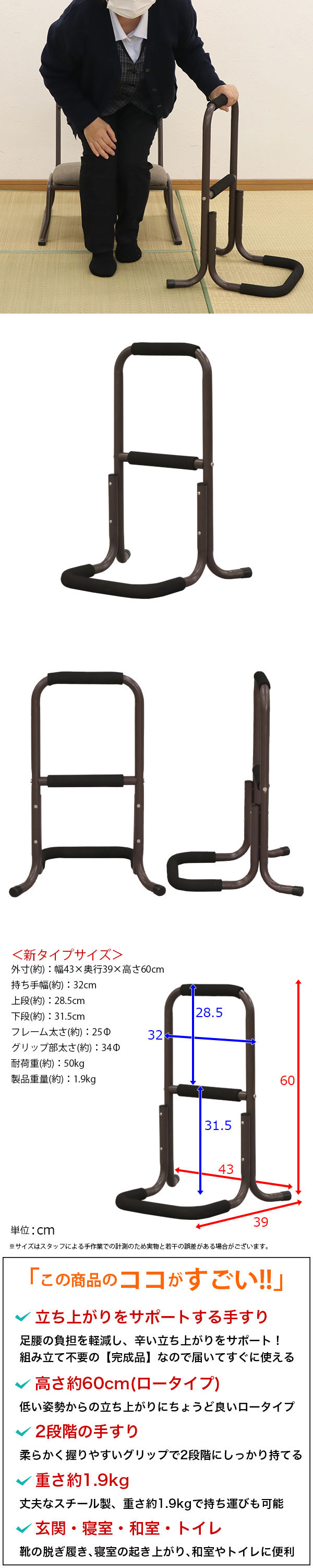 らくらく立ち上がり手すり 完成品 サポートスタンド ロータイプ高さ60cm 幅43cm 奥行39cm 足腰の負担を和らげる立ち上がりサポート手すり 立ち上がり補助手摺り つかまりサポート つかまり立ち手すり 老人 敬老の日 母の日 父の日 玄関 トイレ 寝室 ベッド 介護用(介助用)