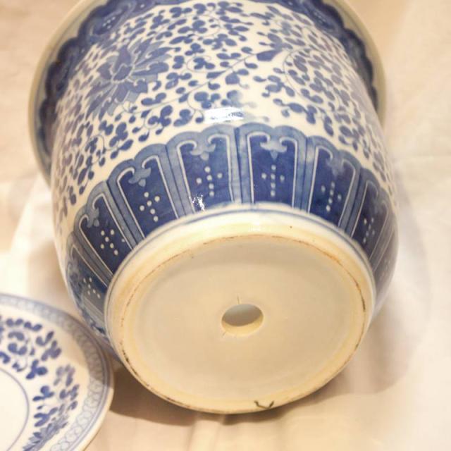 景徳鎮 陶器製 植木鉢 円筒型 受け皿付き