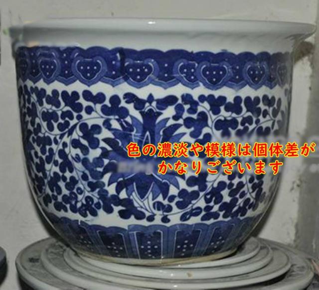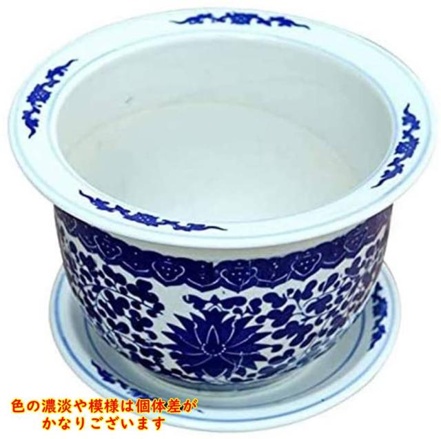 景徳鎮 陶器製 植木鉢 円筒型 外径23cm 受け皿付き 受注発注商品