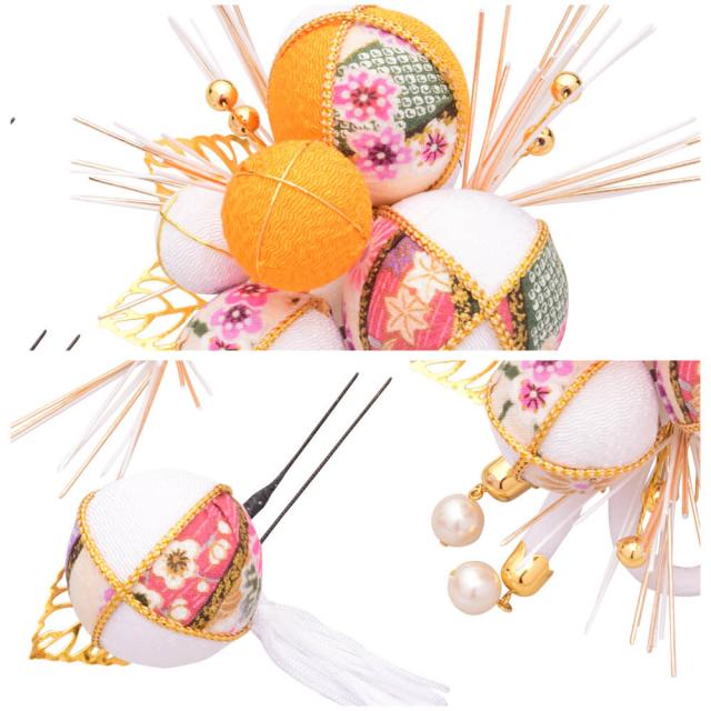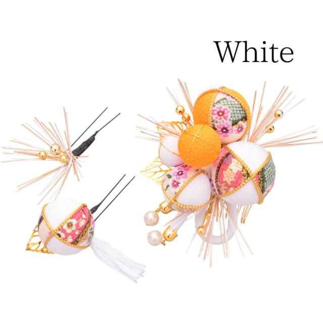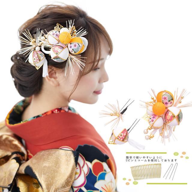 髪飾り ヘッドドレス 3点セット 水引 ちりめん 毬 成人式 白 ホワイト 花かんざし コーム Uピン 卒業式 振袖 着物 袴