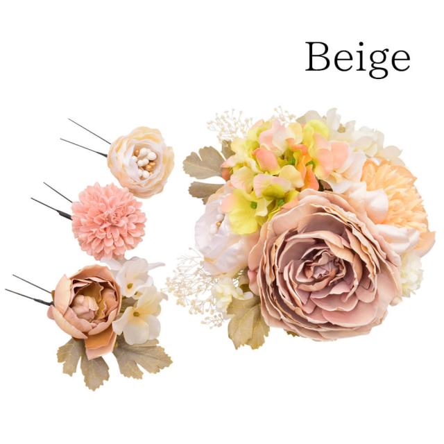 成人式 卒業 髪飾り 花かんざし4点セット ベージュ 結婚式