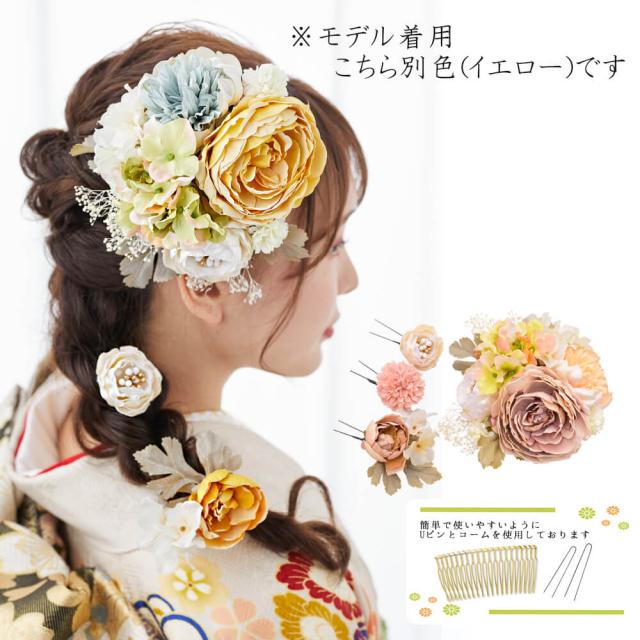 髪飾り ヘッドドレス 4点セット プリザーブドフラワー かすみ草 成人式 白 ベージュ コーム Uピン 結婚式 振袖 着物 袴
