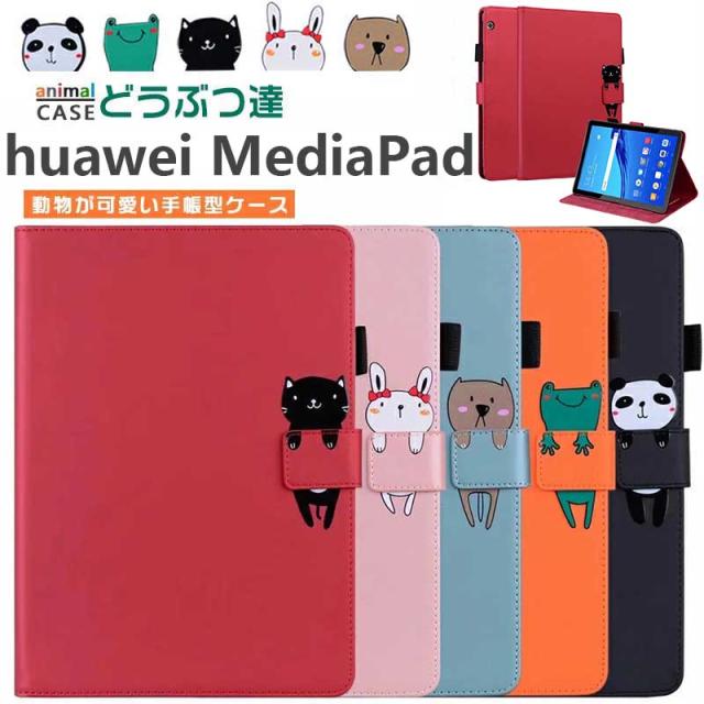 Huawei MediaPad T5 ケース 10.1インチ J:COM タブレットMediaPad M5 lite10 カバー 手帳型 かわいい 可愛い 動物 カード収納 AGS2-W09 AGS2-L09 耐衝撃 ファウェイ メディアパッド t5 ネコ カバー パンダ タブレットケースネコ 猫 オレンジ 横置きスタンド機能 うさぎ 熊
