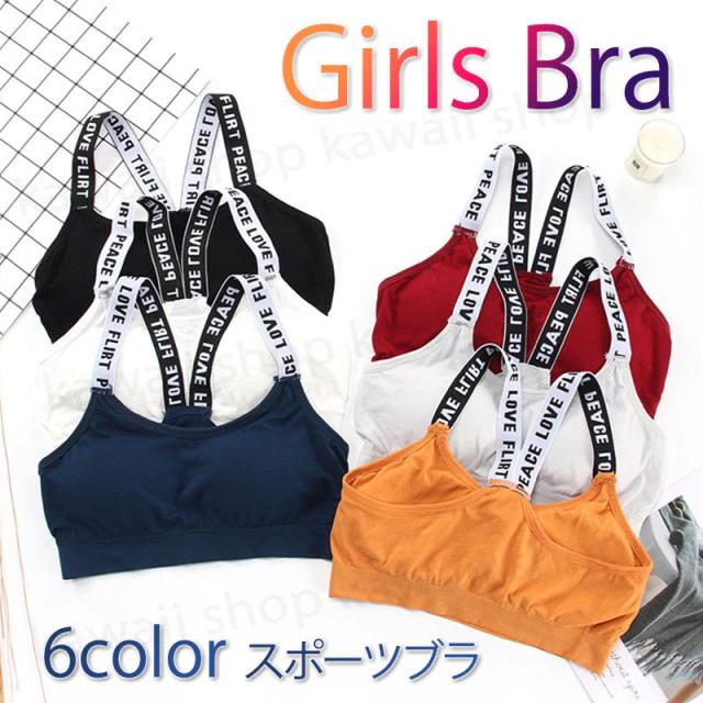 スポーツブラ ジュニア ヨガブラ かわいい 6色 送料無料 ノンワイヤー フィットネスブラ ワイヤーなし パット入り ブラック ホワイト オレンジ ネイビー グレー レッド スポーツブラジャー スポブラ 揺れない レディース ウォーキング シンプル フリーサイズ 無地 6カラー