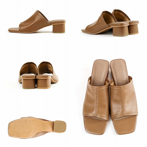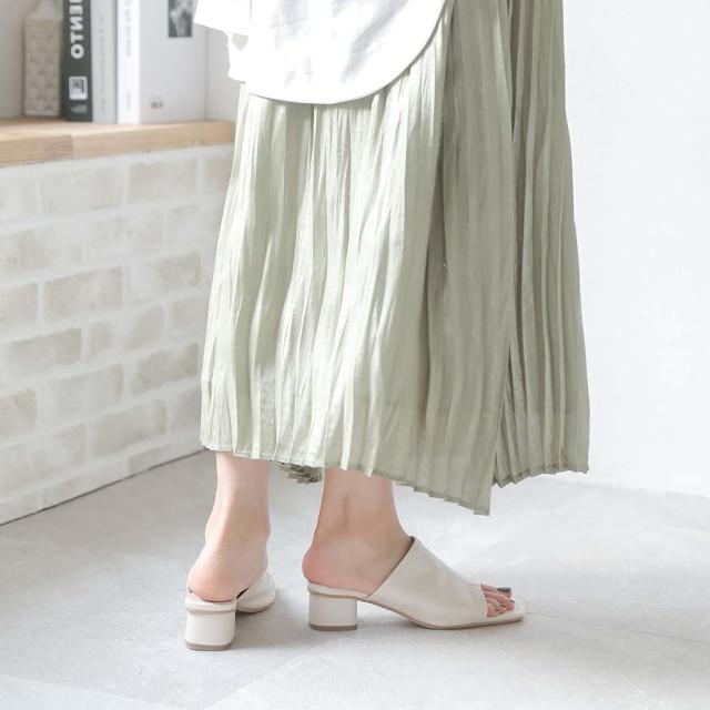 スクエアトゥストレッチミュールサンダル