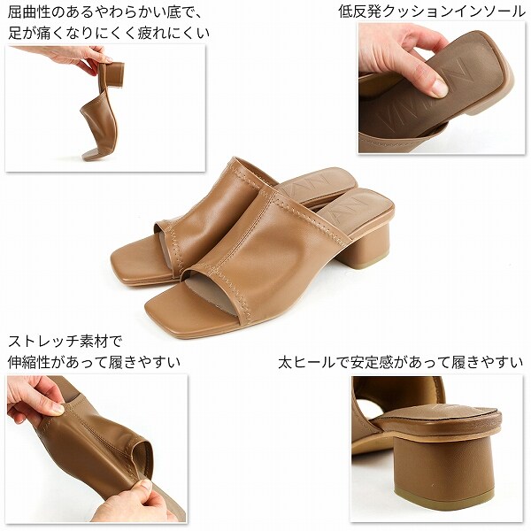 ヴィヴィアン(Vivian)/スクエアトゥストレッチミュールサンダル