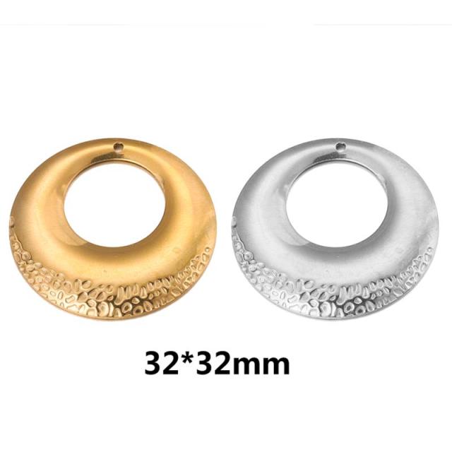 丸型のプレートに穴を開けたまるでドーナツのようなデザインのDIYできるようにチャーム用の丸穴を開けたステンレス製のクラフトパーツ。
