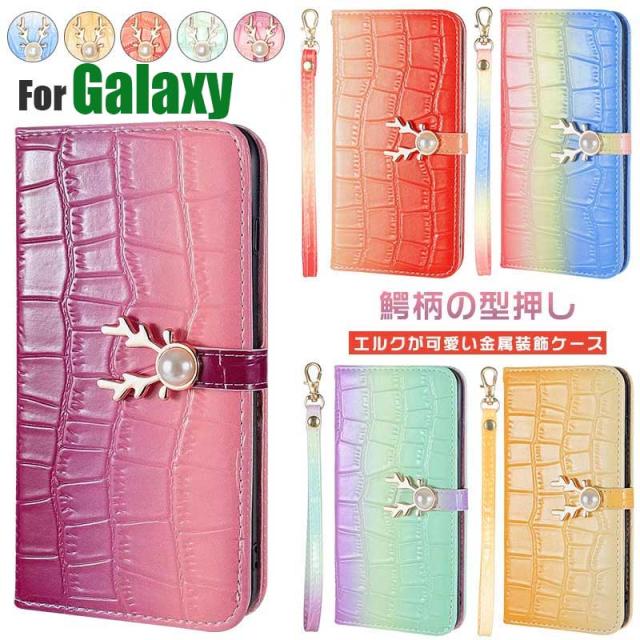 galaxy note10plus ケース 鰐柄の型押し galaxy a52 A51 A41 A21 A20 S22 S21 S20 S10 S9ケース おしゃれ かわいい ギャラクシー galaxy note10plus ケース 保護カバー 好きな 鹿 グラデーション 美しい 手帳 スマホケース 耐衝撃 金属装飾 スマホストラップ ハンドストラップ