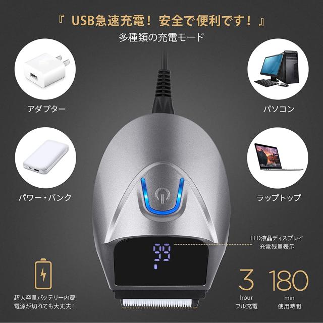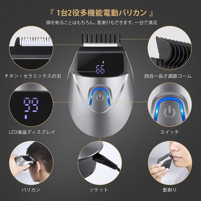 バリカン 家庭用 電動バリカン ヘアカッター IPX7防水 ばりかん メンズ LEDディスプレイ USB充電式 散髪 子供用 幼児 業務用 低騒音