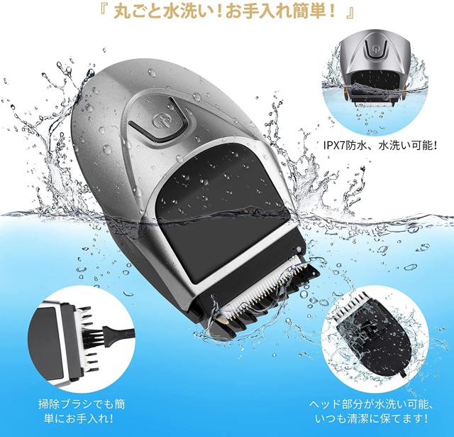 IPX7防水設計により、刃を取り外して水洗いできるので、切った髪の毛や頭皮の皮脂などの汚れが綺麗に清潔でき、手間が大幅に減ります。髪くずも蛇口水できれいに流すことができますから、清潔で掃除も簡単であり非常に安心、便利です。