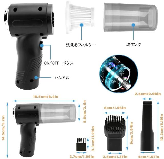 【軽量&小型&操作簡単】小型軽量のハンディ掃除機であり、持ちやすい、腕や肩への負担を減らして、長時間使用しても疲れを感じない、楽に掃除できます。女性や子供でも充分お清掃可能です。また、ファッションなデザイン、高級感が溢れます。操作も簡単、フル充電すると、電源ボタンを押して作業が開始します。