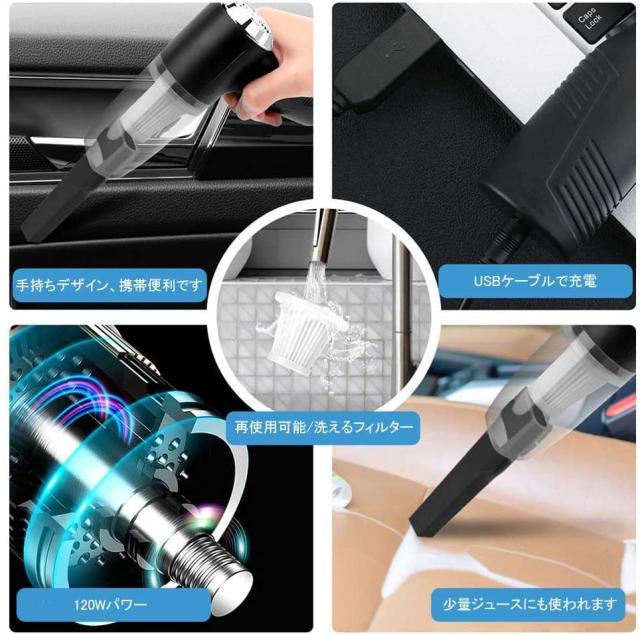 車載クリーナー ハンディクリーナー 車用掃除機 10000PA 超?力 低騒音 乾湿両用 カークリーナー 卓上掃除機 コードレス掃除機 小型掃除機 ハンドクリーナー USB充電式