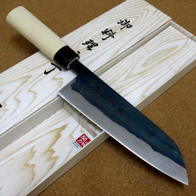 関の刃物 三徳包丁 18cm (180mm) 富士觀 黒打 青紙2号 軟鉄 炭素鋼 ハガネ 朴の木ハンドル ナイロン樹脂口金 家庭用 肉切り 魚の処理 野菜切りなど多種多様な両刃万能包丁 文化包丁 国産日本製
