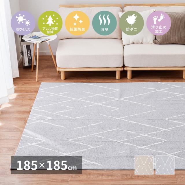 ラグ 洗える 約 2畳 ラグマット 185x185 絨毯 カーペット 抗ウイルス 防ダニ 抗菌 デザインラグ 床暖房対応 ■ゲレロ 185×185cm