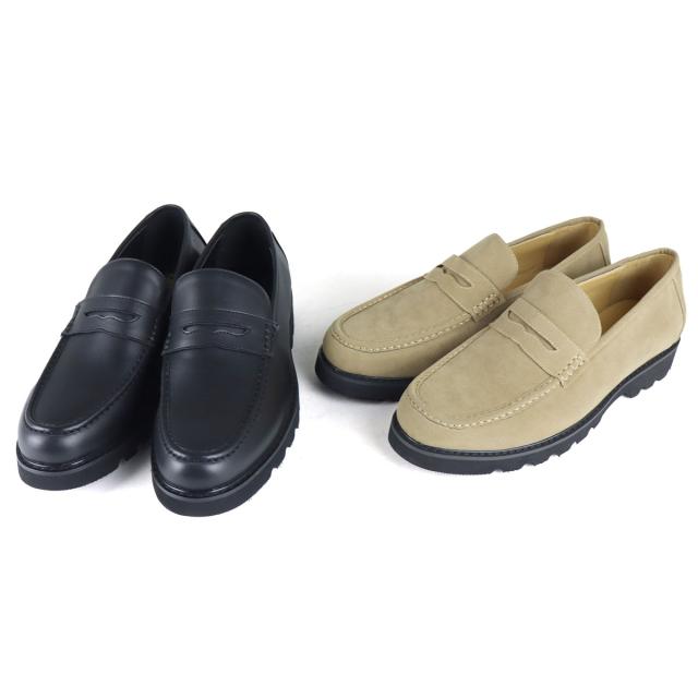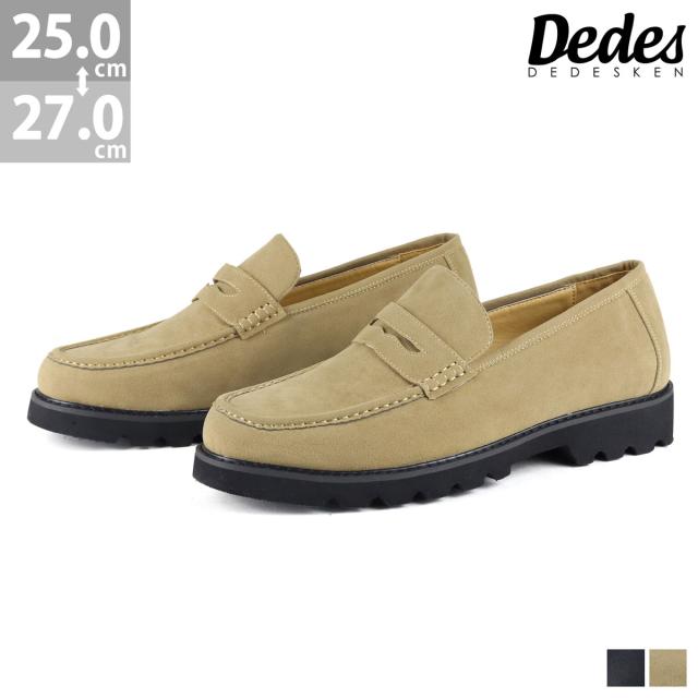 ローファー メンズ タンクソール コインローファー カジュアル スエード おしゃれ 3.5cmヒール No.6301 25.0cm〜27.0cm 黒 ブラック ベージュ Dedes デデス