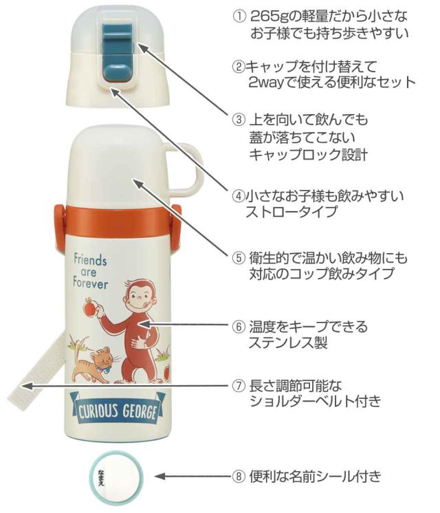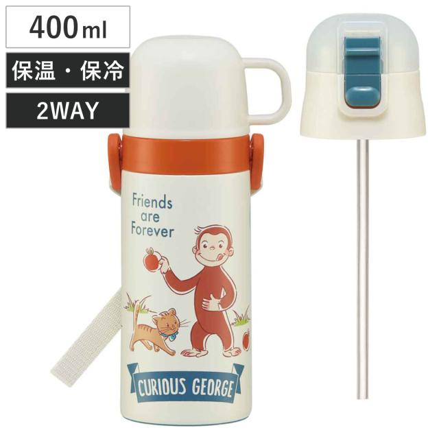 水筒 400ml 350ml 子供用2Wayボトル おさるのジョージ ( ジョージ 保温 保冷 ワンタッチ コップ飲み ストローボトル ステンレスボトル 2way 子供 ワンプッシュ 軽量 子供用水筒 幼稚園 保育園 )