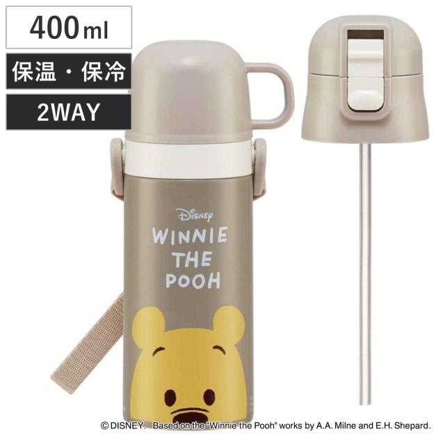 水筒 400ml 350ml 子供用2Wayボトル くまのプーさん ( プーさん 保温 保冷 ワンタッチ コップ飲み ストローボトル ステンレスボトル 2way 子供 ワンプッシュ 軽量 子供用水筒 幼稚園 保育園 )