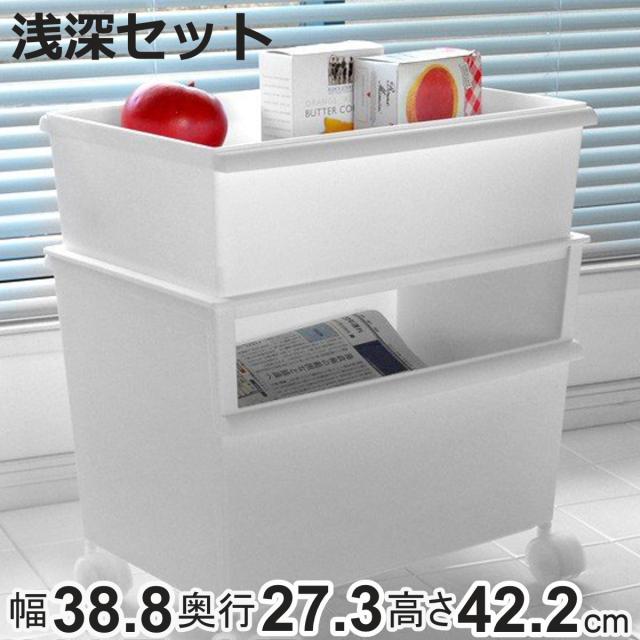 JTRコンテナーワイド浅深セット ( 収納ケース キャスター付 プラスチック 小物収納 収納 ボックス ケース 日本製 フタ付き 軽量 カラーボックス ホワイト 収納ボックス ストッカー 小物 インナーボックス キッチン 小物入れ )