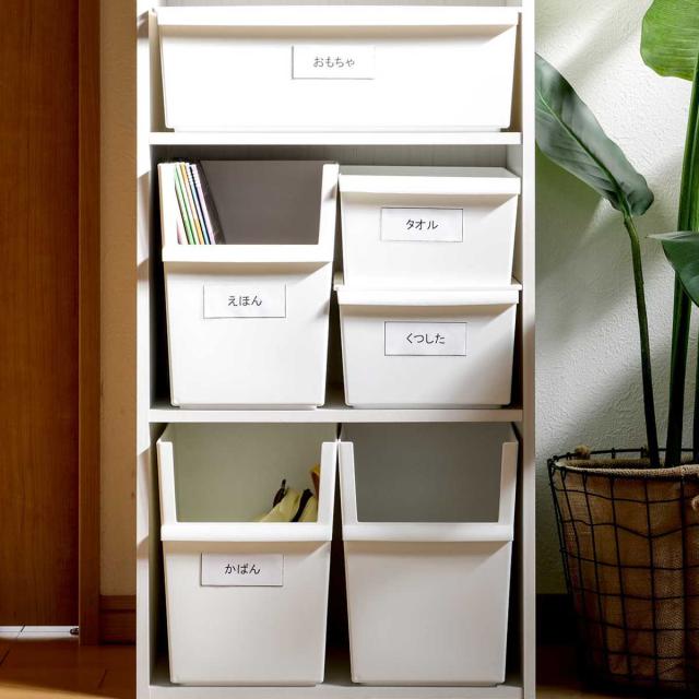 片付けが苦手な人や、お子様には、ラベリングと合わせた使用がおすすめです。ラべリングする事で中身が分かるので、物を探す時間がなくなります。物の定位置が決まることで、しまう時も悩まずに片づけられるようになります。
