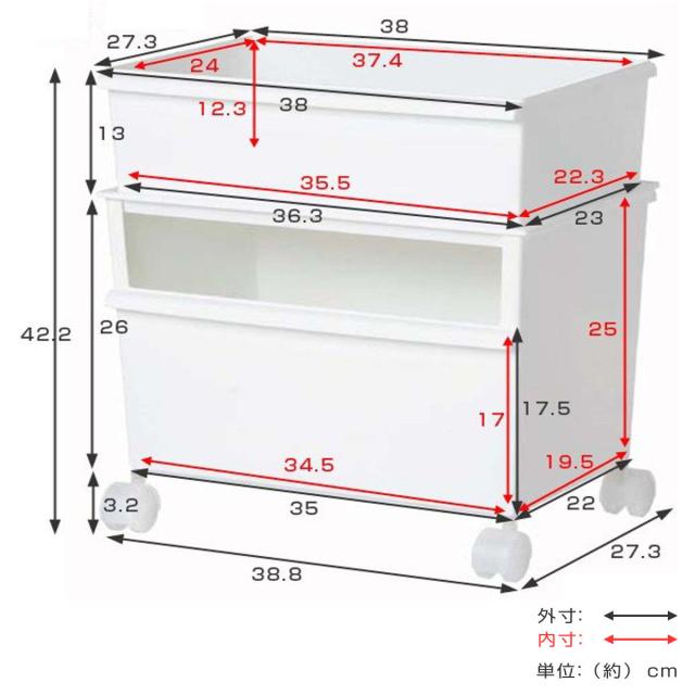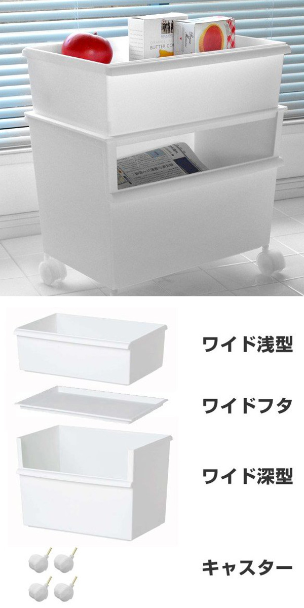 | 内容量 | ワイド深型1個、ワイド浅型1個 付属品:フタ1枚、キャスター4個 |