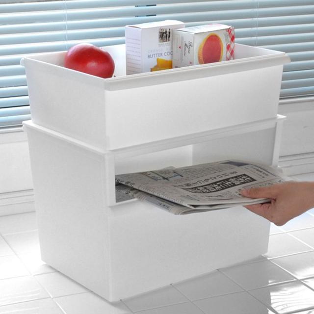 省スペースに設置できるので、オフィスの紙ゴミ分別や、衣類の収納にも便利です。深さのあるボックスは、トイレットペーパーやペットボトルのストックにも役立ちます。