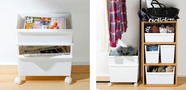 深さ違いのワイドボックスと専用フタがひとまとめになったセットです。フタを使えば画像のようにスタッキングが可能です。さらに差し込むだけで簡単取付けのキャスターが付いてくるので、移動もラクラク。カラーボックスや棚がなくても、これ1つで簡単に収納場所ができあがります。