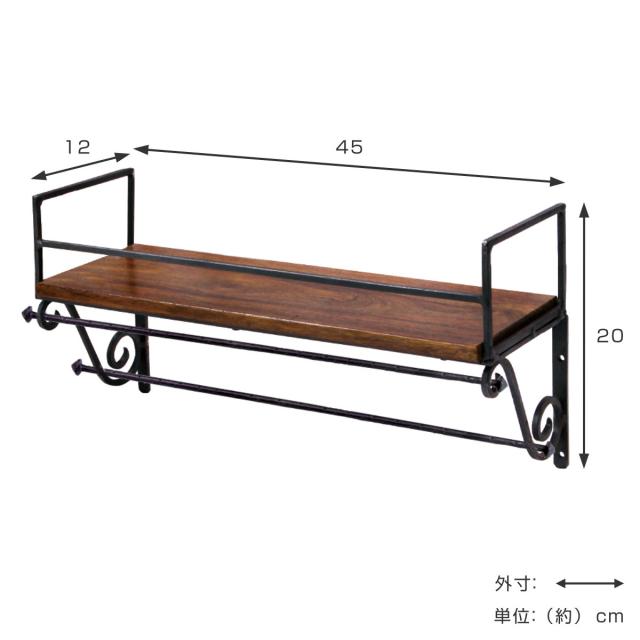 ウォールラック ( 幅45×奥行12×高さ20cm 収納 木製 天然木 ラック 壁 飾り棚 壁掛け 棚 壁掛け収納 ディスプレイ ウッド タオルバー タオルハンガー スパイスラック キッチン 洗面所 おしゃれ リビング )