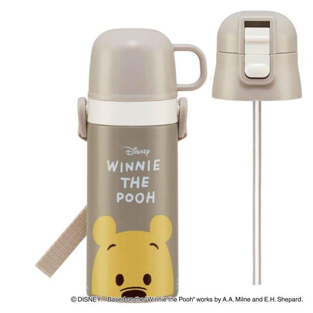 水筒 400ml 350ml 子供用2Wayボトル くまのプーさん ( プーさん 保温 保冷 ワンタッチ コップ飲み ストローボトル ステンレスボトル 2way 子供 ワンプッシュ 軽量 子供用水筒 幼稚園 保育園 )