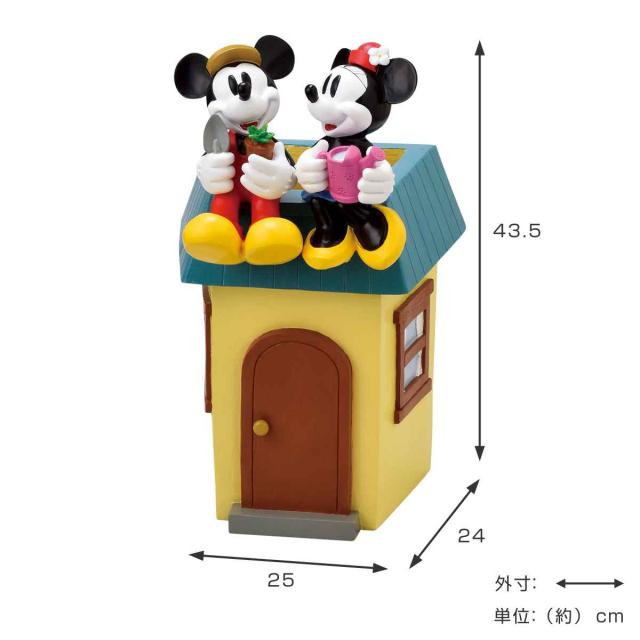 家の屋根に座ってガーデニングを楽しむミッキーとミニーが可愛い傘立てです。雨の日が楽しくなるようなアイテムで、玄関先に癒しをプラスしてくれます。