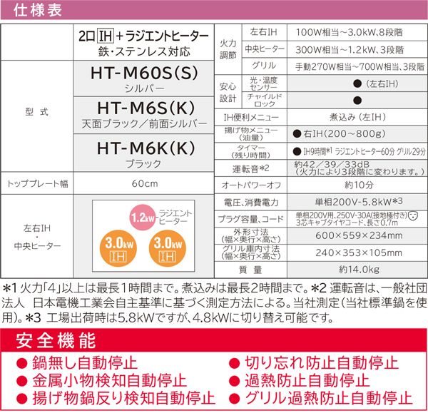 サイズ/タイプ:幅60cm 2口IH+ラジエントヒーター