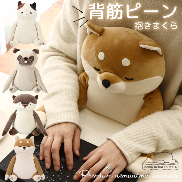 抱き枕 ネコ 抱きまくら クッション 姿勢矯正 ぬいぐるみ 大きい 犬 猫 可愛い かわいい 動物 オフィス 洗える 背筋ピーン抱きまくら