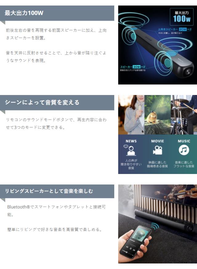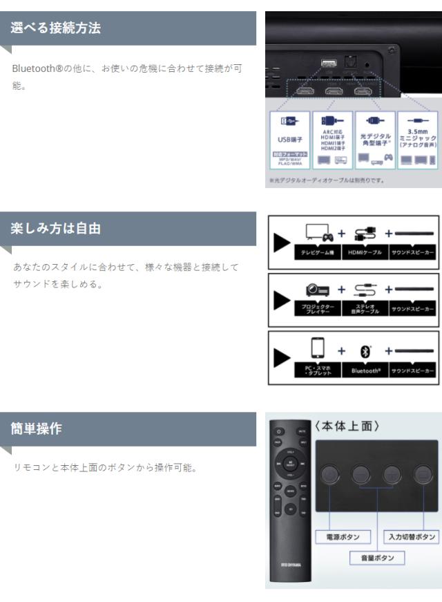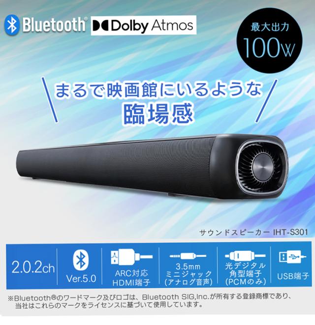 スピーカー サウンドスピーカー IHT-S301 Bluetooth ブラック サウンドスピーカー アイリスオーヤマ 高音質 サウンド 臨場感 映画 音楽 低重音 リモコン 立体音響 TV テレビ スマートフォン タブレット リビング ゲーム 送料無料