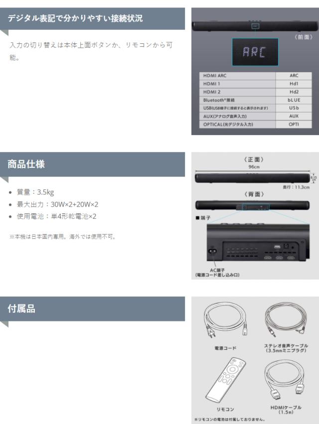HDMI:HDMI端子×2、HDMI端子(ARC対応)×1
