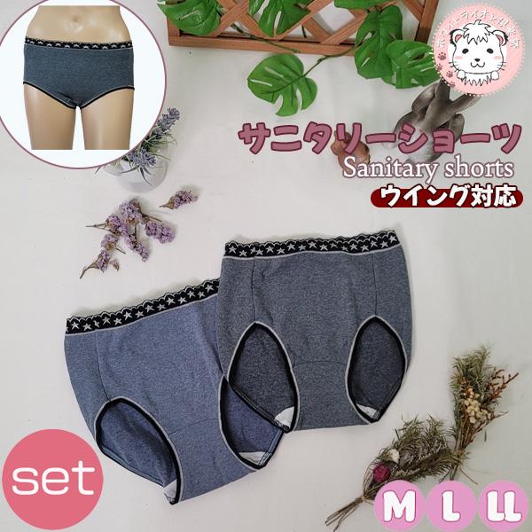 サニタリーショーツ アウトゴム ウイングタイプ 生理用ショーツ 日本製 2枚セット M/L/LL