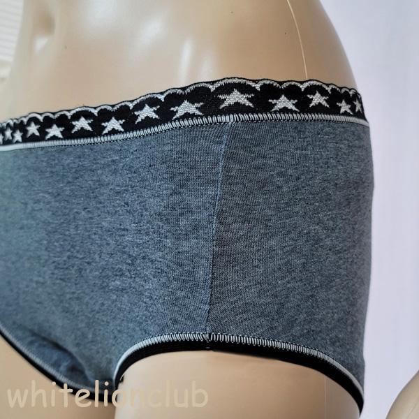 ウエストゴムがかわいいサニタリーショーツ。ウイングタイプで羽根つきナプキン対応です。シンプルな無地のショーツに星柄ゴムがかわいい^^やわらかく、履き心地の良いショーツです。羽根つきナプキン対応の防水布。安心の日本製。清潔さと優しさでブルーデーも安心です!
