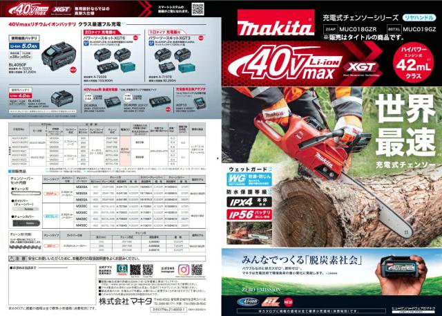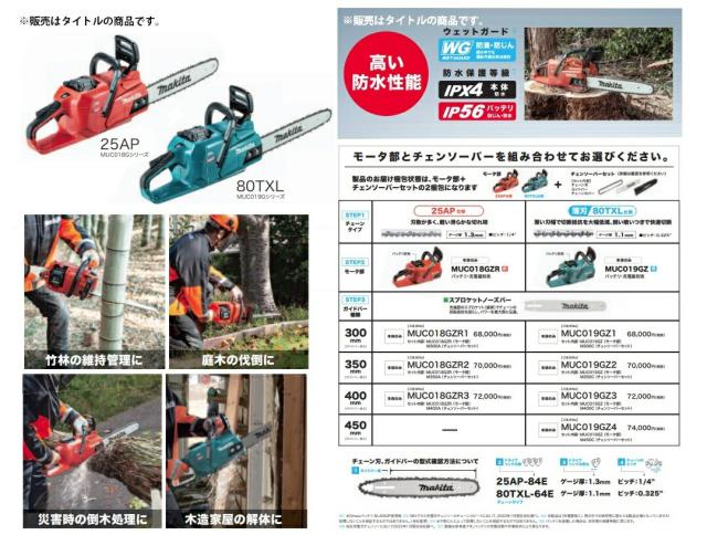 (マキタ) 充電式チェンソー MUC019GZ1 青 本体+M300C ガイドバー長さ300mm チェーン形式80TXL-51E 40Vmax対応 makita
