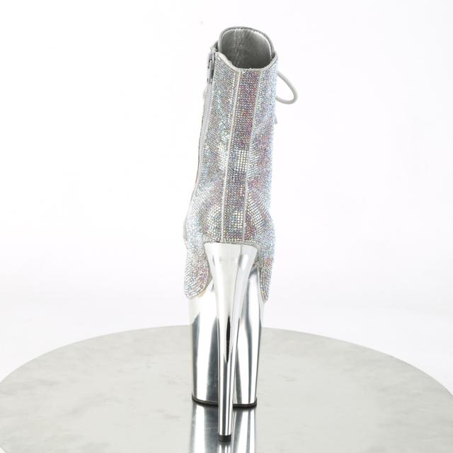 Pleaser(プリーザー) FLAMINGO-1020CHRS フラミンゴ クローム厚底ラインストーンショートブーツ シルバーマルチRS/シルバー◆取り寄せ