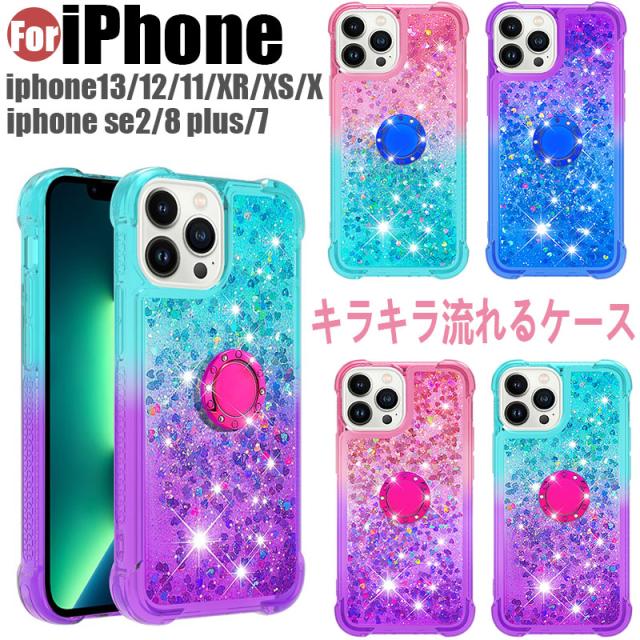 iphone 11pro max 保護ケース スマホケース iphone12 リングホルダーを付 全機種対応 iPhone13 12mini 11pro XS XR SE2 iphone7 8plusケース グラデーション カバー 流砂 キラキラ アイフォン13 プロマックスケース シンプル iphone11 11pro 背面保護 tpu スタンド機能