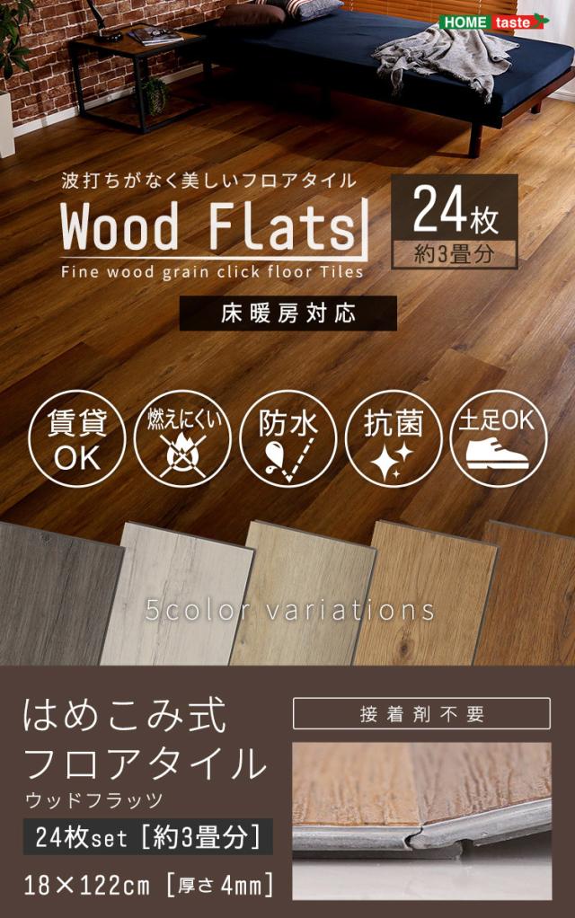 Wood Flats ウッドフラッツ はめこみ式 フロアタイル 24枚セット ウッド調 カーペット フローリング材 フロアマット マット 5色対応