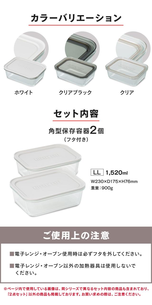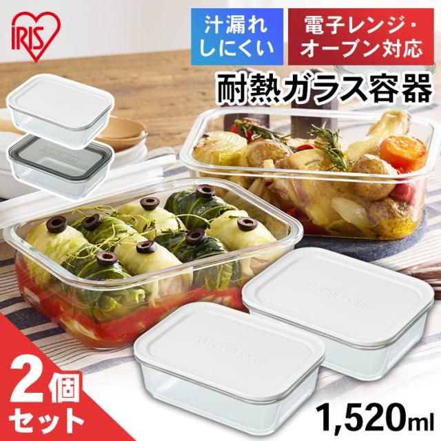 耐熱ガラス 保存容器 2点セット 耐熱ガラス容器 2点セット TGS-2S ホワイト クリアブラック クリア 全3色 耐熱 ガラス 容器 保存 フタ付き 蓋 レンジ オーブン 冷蔵 冷凍 透明 クリア 食洗機対応 シンプル ガラス 汁漏れしにくい アイリスオーヤマ