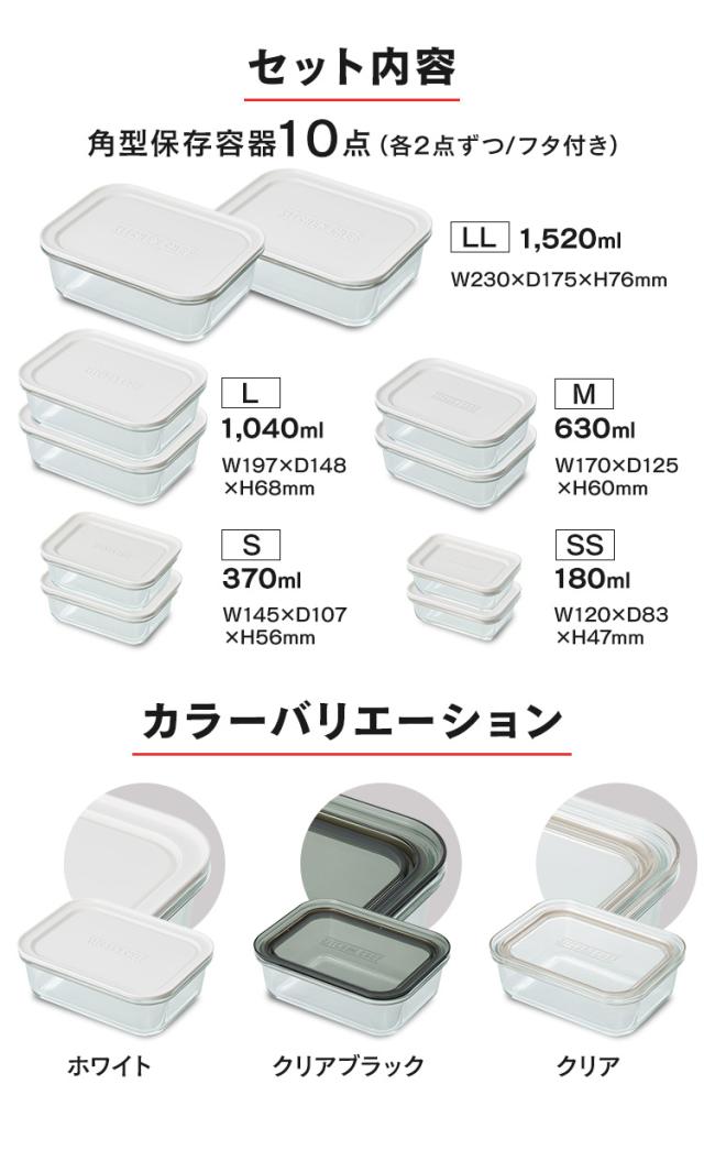 耐熱ガラス 保存容器 10点セット 耐熱ガラス容器 2TGS-2S+TGS-8S 2点セット+8点セット ホワイト クリアブラック クリア 全3色 耐熱 ガラス 容器 保存 フタ付き レンジ オーブン 冷蔵 冷凍 食洗機対応 省スペース収納 スタッキング 汁漏れしにくい アイリスオーヤマ 送料無料