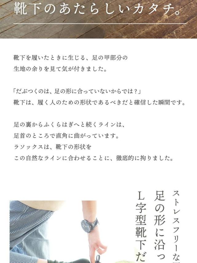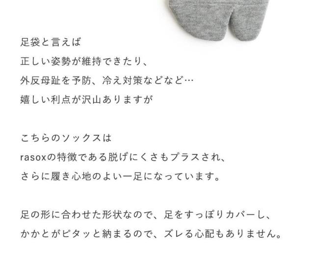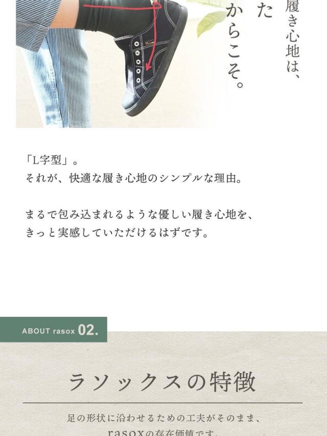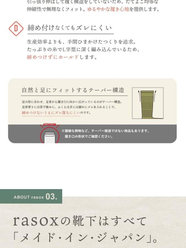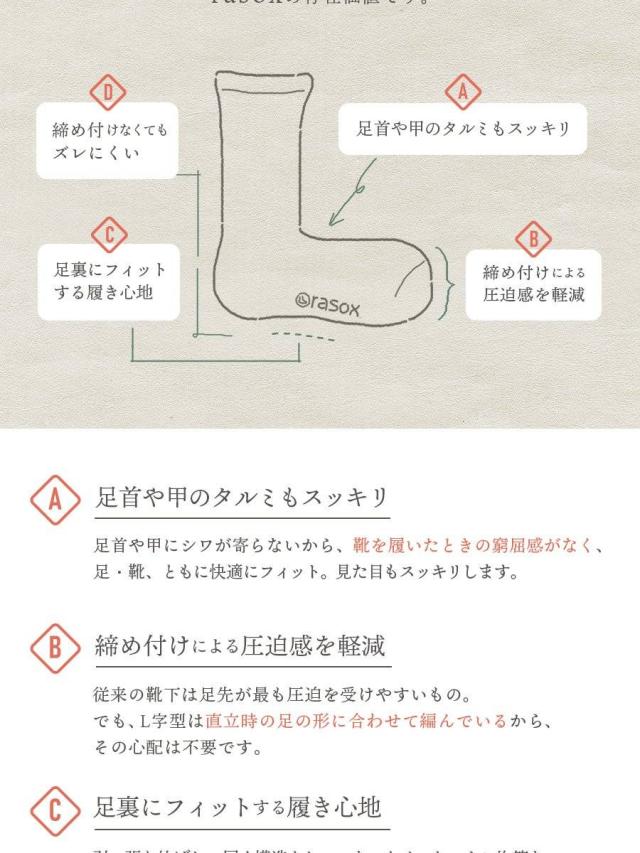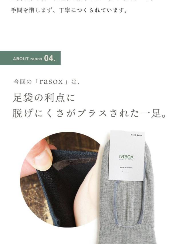 【メール便12】 rasox ラソックス 靴下 くつ下 ソックス L字型 足袋 たび カバーソックス コットン 日本製 メンズ レディース 女性用 S M L 22-24cm 24-26cm 26-28cm 40代 50代 紳士 婦人靴下 男性 女性 ブランド パティ