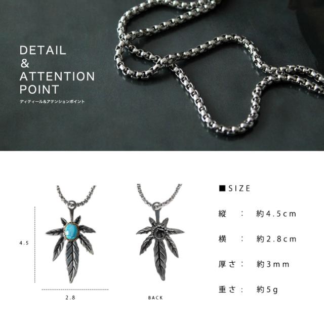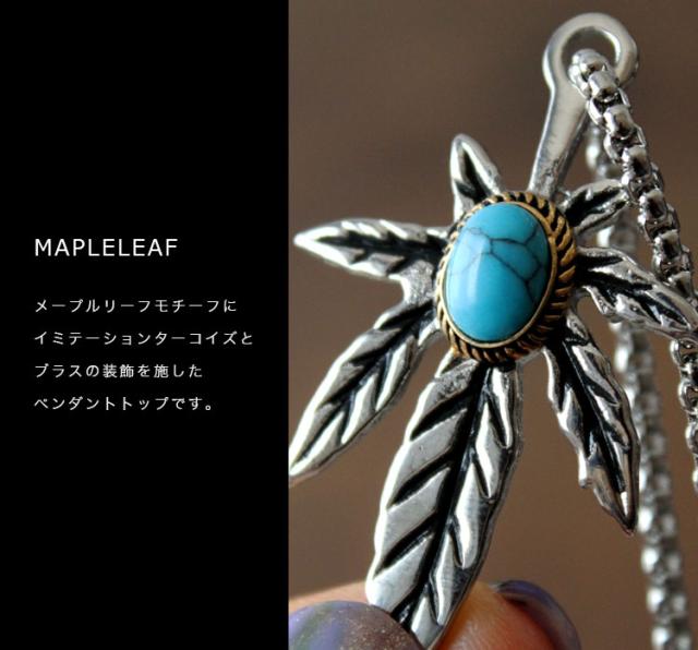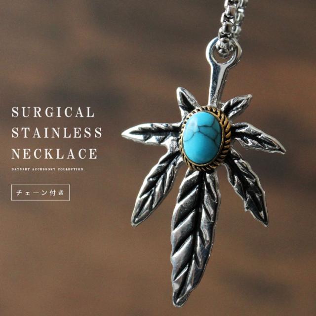 ステンレスペンダント ネックレス メンズ レディース 316Lサージカルステンレス ターコイズ リーフ メイプルリーフ ブラス チェーン付き シルバー ギフト ab-sn018