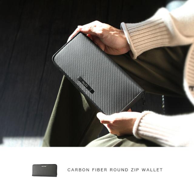 フリュー FRUH 日本製 ラウンドファスナー 長財布 メンズ レディース ユニセックス 本革 リアルカーボンレザー 大容量 小銭入れあり メンズ財布 ブラック ss-gl026