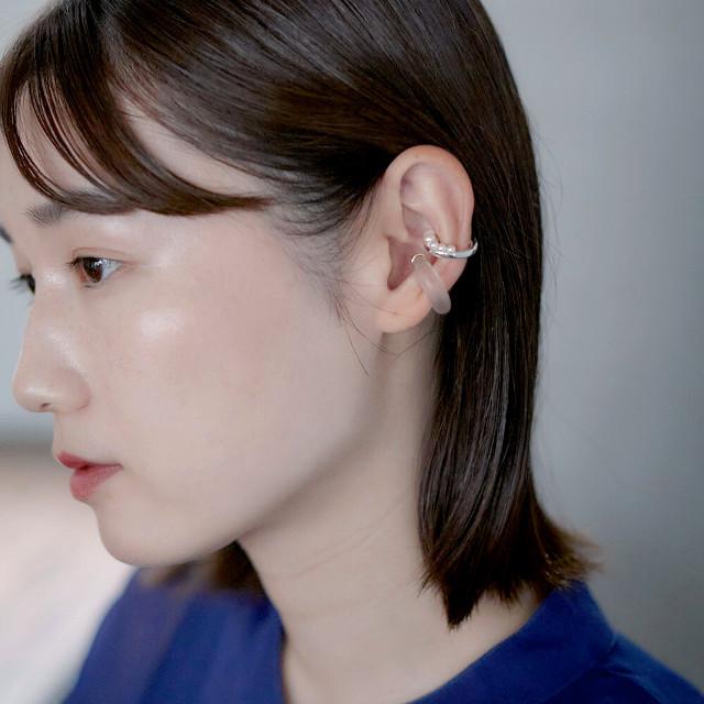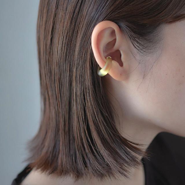 春夏らしくクリアなイヤーカフは子供っぽくなりすぎないようにニュアンスカラーにしました。