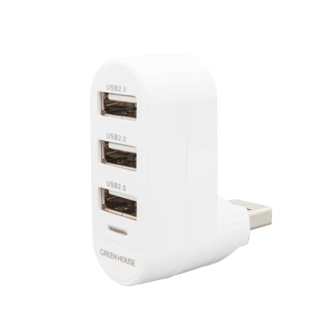USBハブ 3ポート 180度回る回転コネクタ搭載 GH-HB2A3A-WH/7267 ホワイト