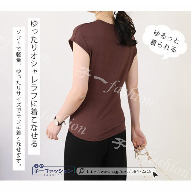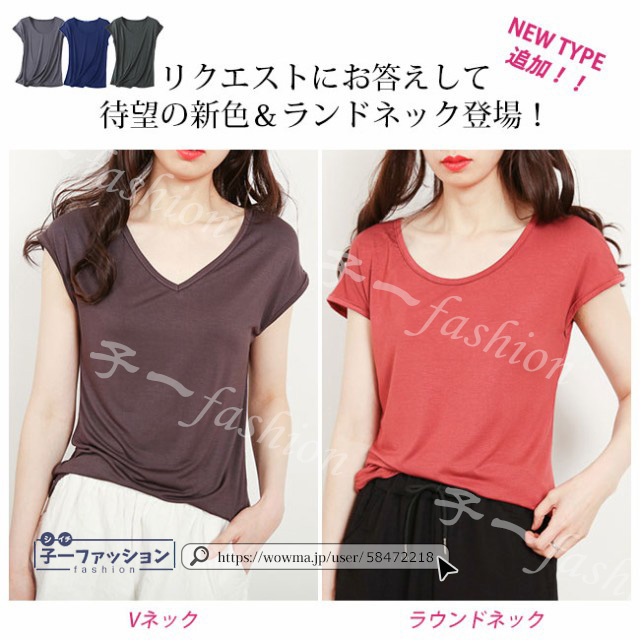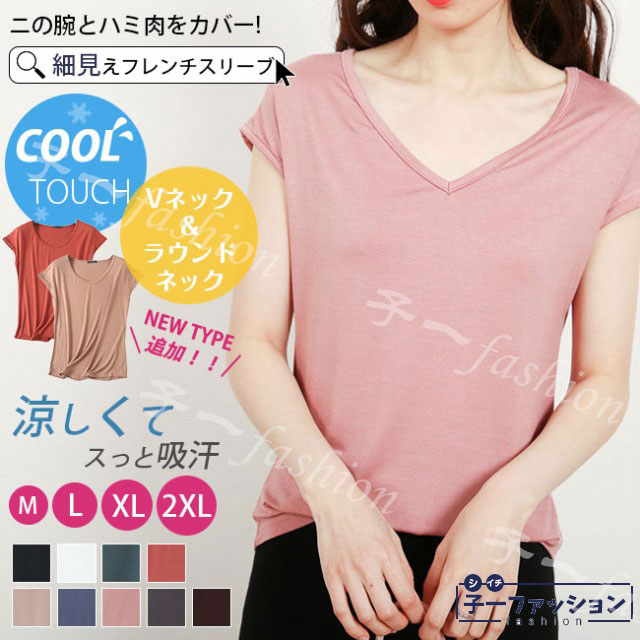 Tシャツ vネック ラウンドネック フレンチスリーブ 柔らかい 涼感 レーヨン混 無地 白 ベイクドカラー おしゃれ 薄手 レディース トップス カットソー ひんやり 涼しい ts 新作 秋冬