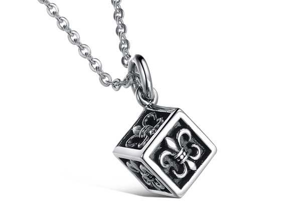 送料無料 ダイス型正方形 ネックレス ペンダント クロムアイテム クロスモチーフ 十字架 メンズ 四角 ステンレス フレア 百合