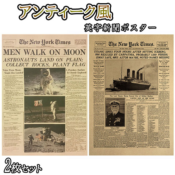ビンテージ風 英字 ニュースペーパー 新聞 アポロ タイタニック 記事 ポスター 模様替え オシャレ リフォーム 船 宇宙 2枚 セット 紙質 インテリア 送料無料 UNI