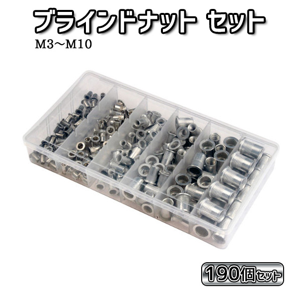 190個 セット ブラインド リベット ナット M3 M5 M6 M8 M10 大量 ねじ込み DIY 工具 部材 パーツ アルミ アルミニウム クリアケース 持ち運びに便利 加工しやすい 送料無料 UNI